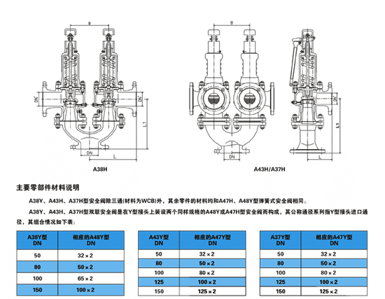 雙聯(lián)安全閥:此閥門有三種型號:A38Y/A37H/A43H是在一個Y型接頭上裝兩個同樣型號規(guī)格的安全閥,其公稱通徑是指Y型接頭進(jìn)口通徑。該安全閥適用于工作溫度≤350℃的蒸汽、空氣等介質(zhì)的設(shè)備或管道上,當(dāng)設(shè)備或管道內(nèi)壓力超過允許值時,閥門自動開啟,繼而全量排放,當(dāng)壓力降至規(guī)定值時,閥門自動關(guān)閉,保證設(shè)備安全運(yùn)行。