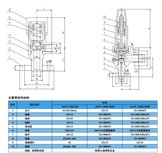 彈簧微啟式高壓安全閥(A41H-160/A41Y-320)適用于工作溫度≤200℃的空氣、氮氫混合氣、水等介質(zhì)的設(shè)備和管路上。A41Y-160P/A41Y-320P型彈簧微啟式安全閥適于工作溫度≤200℃有腐蝕性的氣體或液體介質(zhì)的設(shè)備和管路上,作為超壓保護(hù)裝置。當(dāng)設(shè)備和管路內(nèi)壓力超過允許值時,閥門自動開啟,繼而全量排放,當(dāng)壓力降降至規(guī)定值時,閥門自動關(guān)閉,保證設(shè)備和管路的安全運(yùn)行。