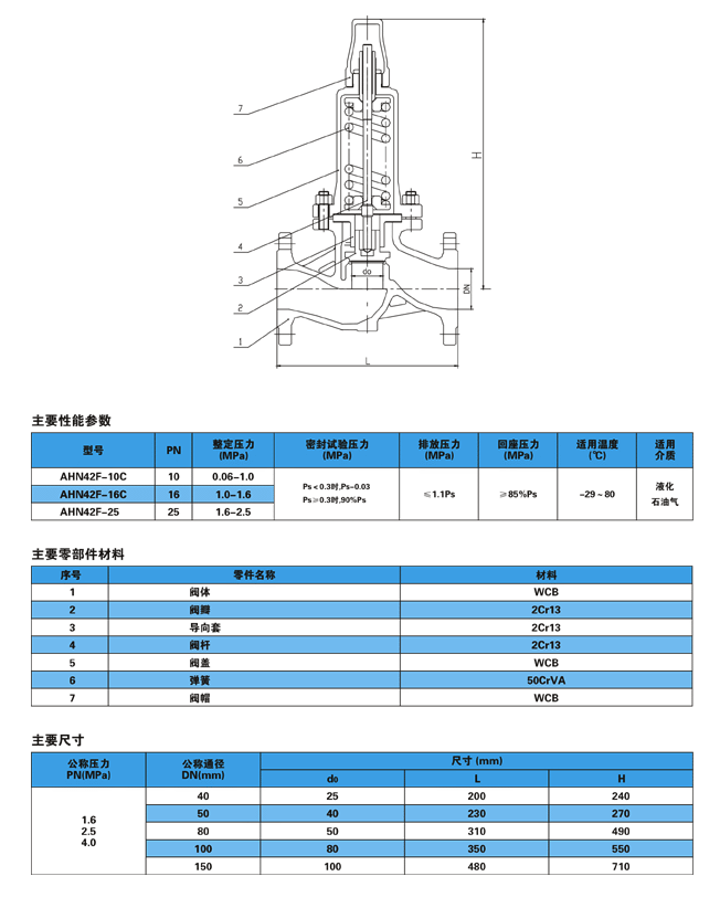 安裝于液化石油氣站罐泵出口的液相回流管道上,當泵前壓力超過規(guī)定值時,閥門自動開啟并起安全回流作用,保證設備和管路的安全運行。起安全回流作用,標準回流壓0.5MPa,可調整回流壓差0.3~0.8MPa。