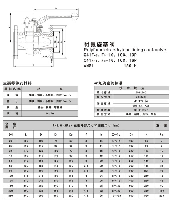 X43F46襯氟旋塞閥是用帶通孔的塞體作啟閉件,塞體隨閥桿轉(zhuǎn)動(dòng),以實(shí)現(xiàn)啟閉動(dòng)作的閥門。旋塞閥啟閉迅速、流體阻力小;鞠盗杏幸r里旋塞閥(全襯型) 和襯套旋塞閥(半襯型)。旋塞閥多用于截?cái)嘟橘|(zhì)流動(dòng),也可分配(三通旋塞閥)。襯氟旋塞閥是為了適應(yīng)一些具有強(qiáng)酸、強(qiáng)堿的腐蝕性環(huán)境,石油、化工、食品等多個(gè)特殊領(lǐng)域的需要,在常規(guī)旋塞閥的閥內(nèi)和閥板上襯聚四氟,使介質(zhì)和閥體隔離,達(dá)到防腐的效果。襯氟旋塞閥在常規(guī)條件下可以替代不銹鋼閥體,具有更高的性價(jià)比。特別是具有嚴(yán)重腐蝕性介質(zhì)的使用場(chǎng)合,如:硫酸、氫氟酸、磷酸、氯氣、強(qiáng)堿、王水等具有強(qiáng)腐蝕性的介質(zhì)。