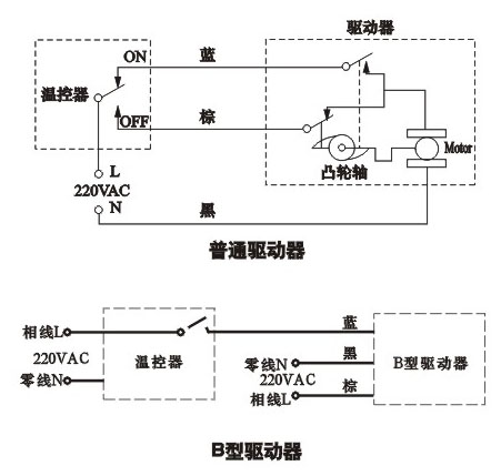 八、 安裝調(diào)試要求 1、安裝前請(qǐng)仔細(xì)閱說明書,必須由專業(yè)技術(shù)人員進(jìn)行安裝,并嚴(yán)格按照接線圖接線。 2、二通電動(dòng)閥介質(zhì)流向可從A至B,也可從B至A:三通電動(dòng)閥介質(zhì)流向從AB至A或B。 3、驅(qū)動(dòng)器可任意角度安裝,但必須在閥體的水平上方。 4、安裝時(shí)絕不能對(duì)驅(qū)動(dòng)器施力,否則會(huì)損壞驅(qū)動(dòng)器。 5、卸下閥體安裝時(shí)絕對(duì)不能對(duì)閥桿施力,否則閥桿變形導(dǎo)致漏水。 6、本閥不能配三速開關(guān),只配機(jī)械或者電子式溫控器。 7、調(diào)試時(shí)必須觀察驅(qū)動(dòng)器是否能可靠啟動(dòng)或停止,若連續(xù)不停地上下走動(dòng),必須調(diào)換驅(qū)動(dòng)器,否則閥桿密封壽命會(huì)很短。 8、當(dāng)拔桿在上部時(shí),可采用手動(dòng)操作,通過向下推動(dòng)白色手動(dòng)拔桿至中間位置,并向里推,可以打開閥門。通過輕輕的壓低白色手動(dòng)拔桿,然后將拔桿拉出,將閥門手動(dòng)恢復(fù)到閉合位置。當(dāng)電源恢復(fù)時(shí),閥門和驅(qū)動(dòng)器回到自動(dòng)位置。 九、注意: 如果閥門被馬達(dá)驅(qū)動(dòng)打開,除非取下驅(qū)動(dòng)器,否則不能手動(dòng)閉合閥門。 為了避免產(chǎn)品運(yùn)行中的麻煩,在安裝之前,要沖刷整個(gè)系統(tǒng),并在系統(tǒng)中安裝50微米(或更細(xì))的過濾裝置。 十、 維修和保養(yǎng) 1、若閥門在泄漏,應(yīng)將流體排盡或?qū)⑵鋸南到y(tǒng)中隔離。 2、檢查是否需要更換閥芯組件。 3、若驅(qū)動(dòng)器不工作或連續(xù)不斷的上下走動(dòng),應(yīng)更換整個(gè)驅(qū)動(dòng)器。 十一、 重要警告 1、安裝、維修和保養(yǎng)之前必須先將電源切斷。 2、換閥體或閥芯時(shí)必須先切斷流體,打開風(fēng)盤排氣閥以徹底卸壓方可操作。 3、使用中若閥門在泄漏,必須立即將閥門從系統(tǒng)中隔離并排盡流體。 4、選擇普通型驅(qū)動(dòng)頭,一個(gè)溫控器只能配一個(gè)電動(dòng)閥,否則造成的一切后果,廠家概不負(fù)責(zé)。
