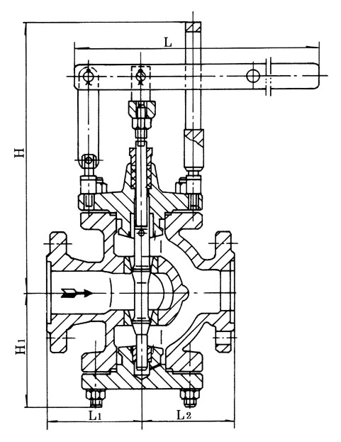 Y45Y杠桿式減壓閥由閥體、閥蓋、閥桿、閥瓣、閥座及杠桿等零件組成。配用電動執(zhí)行裝置,實行遠程自動操作。杠桿式減壓閥主要配套在減壓裝置上,起到調(diào)節(jié)壓力作用,減壓比一般為0.6較合適。選用DKJ一31O電動執(zhí)行裝置,DN500閥選用DKJ一51O電動執(zhí)行裝置較合適。